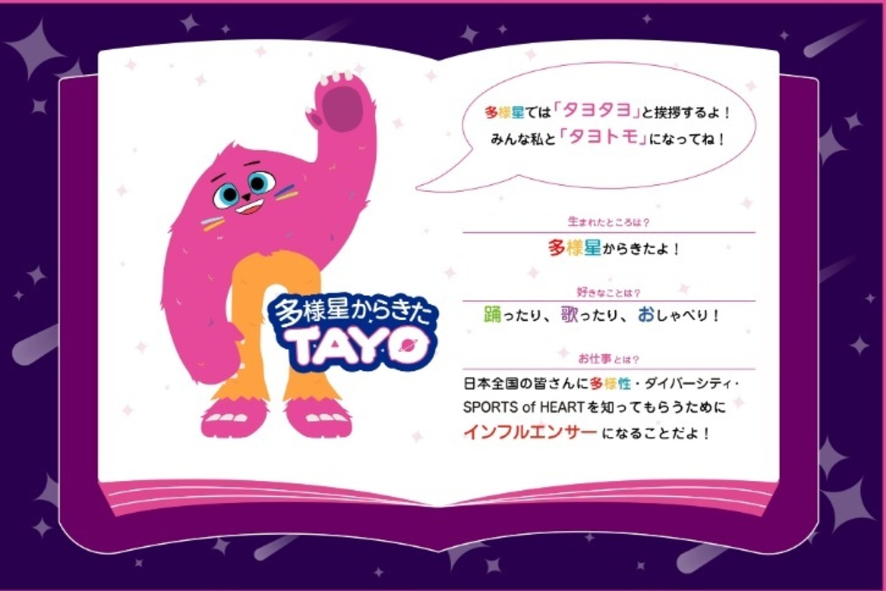 SPORTS of HEARTでは、多様性の取り組みや価値観をより多くの方に広げるためにオリジナルキャラクター「多様星からきたTAYO」をつくり、多くの皆さまと一緒にダイバーシティの輪を広げていきたいと思っております。